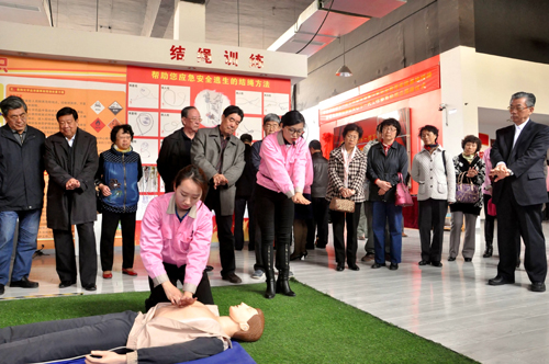 揭牌儀式開始前,出席儀式的嘉賓們還參觀了海麗雅集團應(yīng)急安全教育培訓(xùn)中心和產(chǎn)品展廳,觀看了企業(yè)發(fā)展宣傳片。在培訓(xùn)中心,恰逢青島市北仲路第一小學(xué)的學(xué)生正在爭先恐后的體驗高層緩降、煙霧走廊逃生、模擬地震,學(xué)習(xí)消防滅火、結(jié)繩自救、醫(yī)療急救等知識,體驗現(xiàn)場異常熱鬧。孩子們學(xué)習(xí)的津津有味、不亦樂乎。徐長聚主任在饒有興趣的看著孩子們學(xué)習(xí)體驗場景的同時,不住的點頭稱贊:企業(yè)面向青少年應(yīng)急安全教育事業(yè),實在了不起;他指出,“生命誠可貴,安全必相隨”,對集團研發(fā)的高品質(zhì)惠民應(yīng)急產(chǎn)品給予肯定。他同時鼓勵企業(yè)要永不滿足,致力創(chuàng)新,在關(guān)心下一代工作方面有所作為,在爭創(chuàng)國際知名品牌道路上不斷前行。