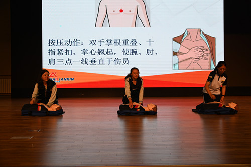 本次培訓以“青春自護,安心相伴”為主題,從暑期安全和校園安全兩個方面,向師生們教授了防溺水、防中暑、防雷電、心肺復蘇、海姆立克急救法、宿舍安全等知識和技能.溺水事故是暑期高發安全事件。在防溺水培訓中,海麗講師從一起起觸目驚心的案例出發,向師生們展示了溺水事故給個人和家庭帶來的傷痛,分析了各類水域的安全風險,幫助師生們辨別了傳統救護的錯誤觀念和做法,并從專業角度講解了溺水救護的正確方法。為提高師生的自救能力,培訓中心講師還進一步講解演示了心肺復蘇、海姆立克等救護技能。