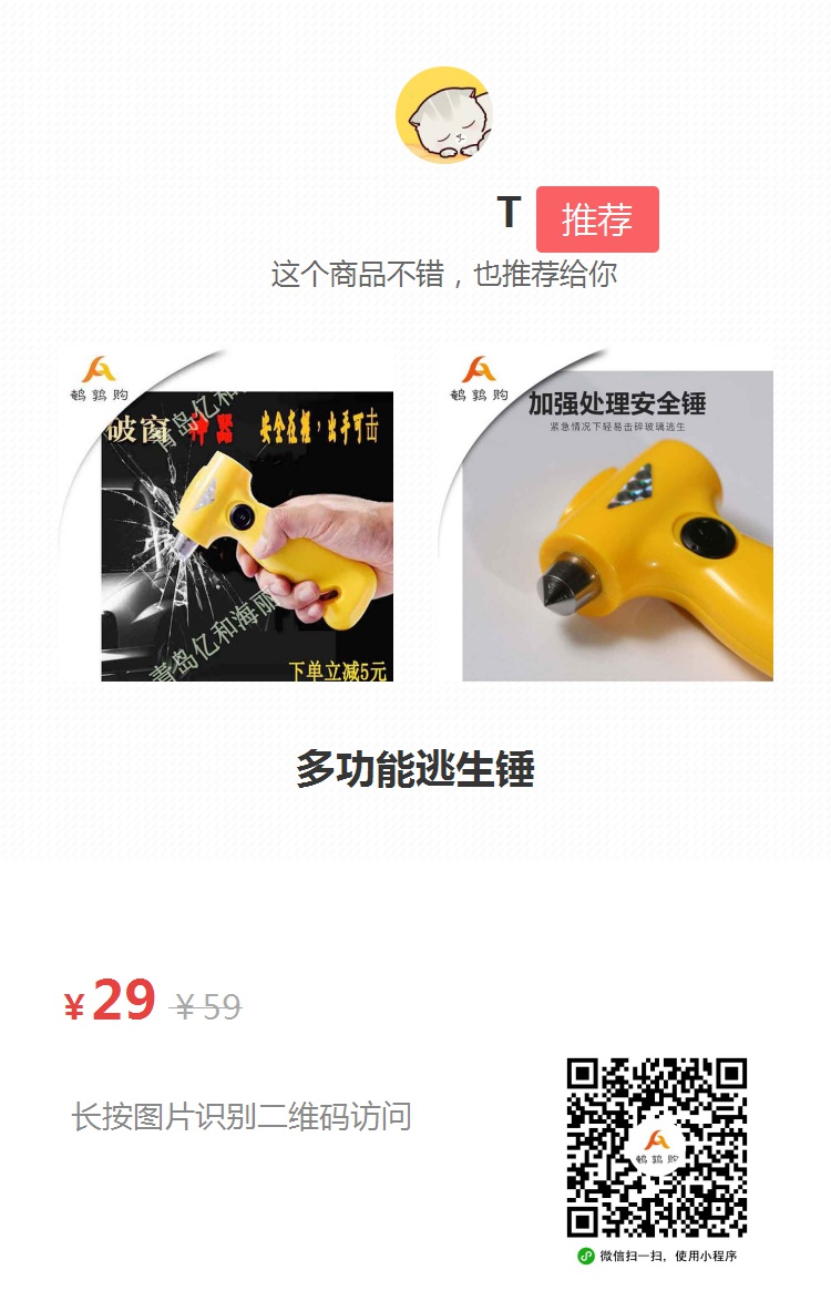 視頻中可以看出,并不是所有的“安全錘”都是有效的,由此可見(jiàn),市場(chǎng)上依舊充斥著各種假冒仿制品,試想一下,在遇到危險(xiǎn)時(shí),能否將自己的生命寄托在這種產(chǎn)品上呢?下面,小編就給大家介紹一款,質(zhì)量有保證、價(jià)格實(shí)惠、功能多樣的車(chē)載多功能逃生錘。