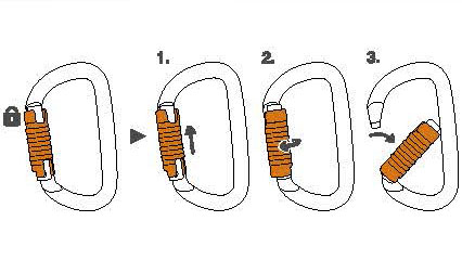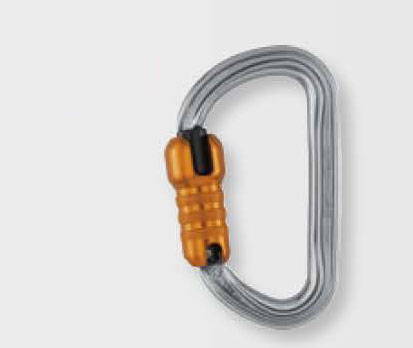 由鋁合金制成,它的橢圓外形可使較寬的裝備如滑輪、上升器和移動(dòng)止墜器位于比較好的位置。流暢的內(nèi)部設(shè)計(jì)讓使用更為簡(jiǎn)便。它有多種上鎖系統(tǒng):自動(dòng)鎖門或手動(dòng)鎖門。可與固定桿配合使用,能使安全鉤在主軸受力,減少翻轉(zhuǎn)的風(fēng)險(xiǎn),并保持與裝備的連接。