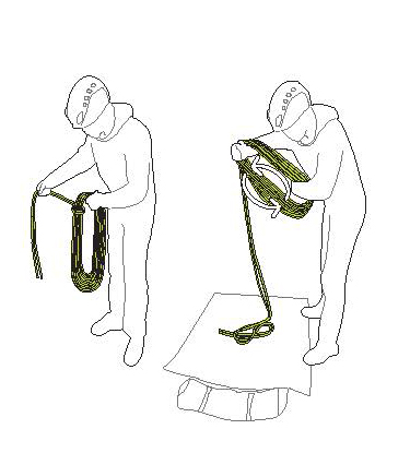 繩袋是儲存和運輸你的行李非常好方法繩索。繩袋提供足夠的空間,打包并用防水布保護繩索不受污染和濕氣的影響,將繩索的一端系在拐角處的系帶上,以防止繩索在轉彎時無意中穿過保護裝置放下。然后跑把繩索穿過你的手,疊在地板上防水油布領頭的攀巖者現(xiàn)在可以系在自由端。當你繼續(xù)前進時,把自由端系在防水布上的這些空調環(huán)上,把它卷起來,固定在繩袋里。