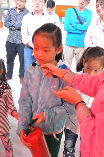 走進培訓中心,豐富的體驗點讓學生們歡呼雀躍,3D技術短片《災難警示錄》播放過程中,地震來臨,成群老鼠亂竄,觀看的孩子情不自禁抬起雙腳遠離地面;消防標志識別系統、火災隱患識別查找系統等寓學于樂小游戲,孩子們在爸爸媽媽的幫助下邊學邊玩,邊相互比賽,不亦樂乎;滅火器激發孩子動手欲望,孩子們眼睛緊緊盯著滅火器,不等解說員講解完就迫不及待的體驗;在高層樓宇緩降器體驗區,劉宸鑠在爸爸的鼓勵下體驗高層緩降,成功著地后,劉宸鑠歡呼的拽著爸爸一起高層緩降,體驗完高層緩降之后,劉宸鑠爸爸告訴講解員:“剛開始心里有點擔心,現在孩子和我都體驗完之后,感覺很安全,孩子不但學會了高層緩降,發生火災時能保護自己,而且鍛煉了孩子的勇氣”;119火災報警系統區域,張笑芊一秒鐘也等不及的想要體驗,索性和旁邊同學共用一個電話體驗,兩人異口同聲的回答,引來家長陣陣笑聲。