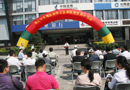 樓上濃煙滾滾,消防車呼嘯而至,人群用濕毛巾捂口鼻往外跑……9月21日上午,市南公安消防大隊(duì)聯(lián)合市南安監(jiān)局,在閩江路國(guó)華大廈進(jìn)行高層建筑火災(zāi)救援演習(xí)。此次活動(dòng),億和海麗有限公司的演示人員使用高層樓宇逃生緩降器自17層滑降至5樓平臺(tái),被消防戰(zhàn)士救走。據(jù)介紹,高層建筑發(fā)生火災(zāi),逃生緩降器是目前較為有效的逃離救生工具。