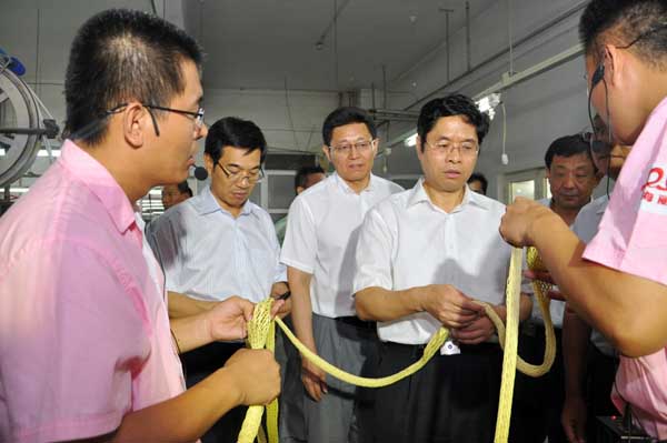 青島市常務副市長牛俊憲陪同國家工信部領導蒞臨海麗工業園考察特種繩纜研發生產情況