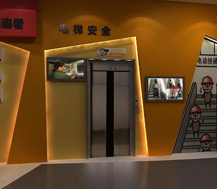 電梯事故體驗(yàn)裝置展示形式: 制作一個(gè)模擬的電梯間,電梯門(mén)可以開(kāi)啟和關(guān)閉。當(dāng)人們進(jìn)入模擬的電梯后,選擇樓層按鈕可以開(kāi)始模擬運(yùn)行,在開(kāi)始到運(yùn)行時(shí),突然出現(xiàn)電梯故障,例如:不運(yùn)行、停電開(kāi)速下降等。為了逼真體驗(yàn),在電梯內(nèi)部安裝有電視機(jī),運(yùn)行時(shí),電視配合場(chǎng)景變化。